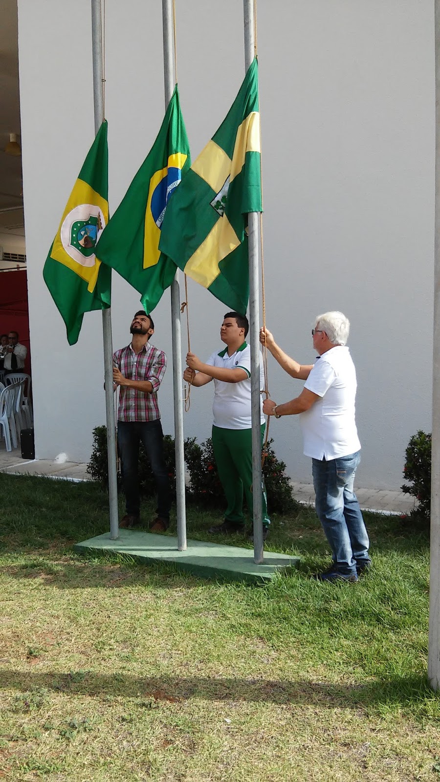 iniciando com hasteamento das bandeiras, execução de hinos, pronunciamentos de